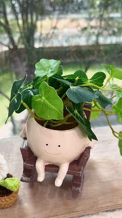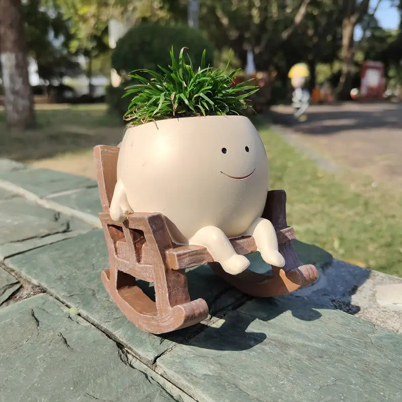 Unlike static planters, this wheelchair planter gently rocks back and forth,